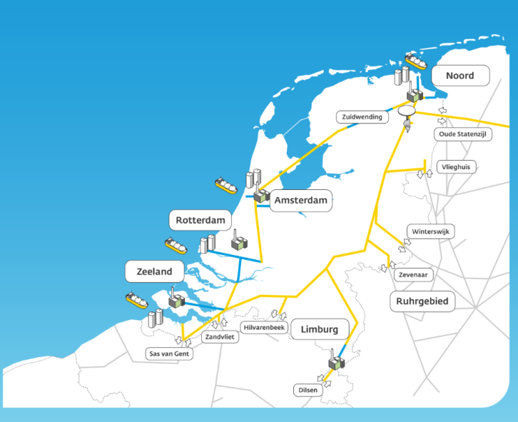 相对完备的天然气管道网络及能源化工产品运输港口为荷兰打造未来欧洲氢能中心枢纽提供设施基础。管道方面,依托国内天然气储量优势,荷兰建立了拥有较为发达的天然气管网,总长超13万公里,随着国内天然气开采停止,荷兰政府正研究对现有天然气管网进行氢气输配改造,后期可为氢能的输送和分配提供重要的基础设施支撑,打造荷兰“国家氢气骨干网”。港口方面,荷兰位于北大西洋航路和欧洲大陆出海通道的交界处,面向北海,背靠欧洲大陆腹地的战略位置。荷兰鹿特丹港作为世界上最重要的物流和工业中心之一,拥有极其先进的集装箱和货物处理设施,是重要的石油和化学品运输枢纽,也是荷兰通往欧洲大陆其他地区的门户,可支撑荷兰在氢能进口、生产、储存和分销等重要环节发挥作用,推动荷兰从欧洲主要天然气中心转换为欧洲主要氢能中心。