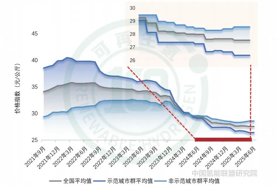 中国氢价指数2025半年简报:全国氢价指数呈稳步下降趋势