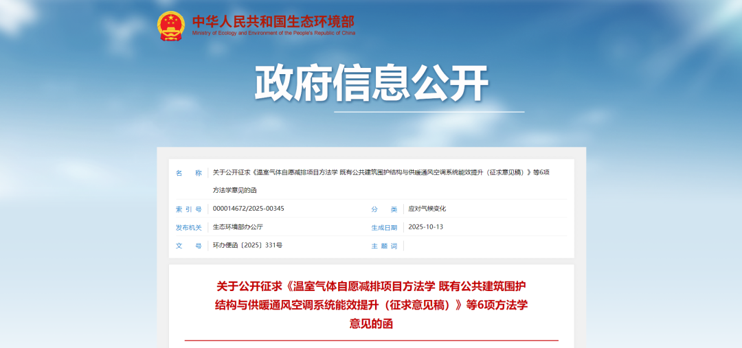 关注 | 生态环境部公开征求《温室气体自愿减排项目方法学 可再生能源电解水制氢》等6项方法学意见