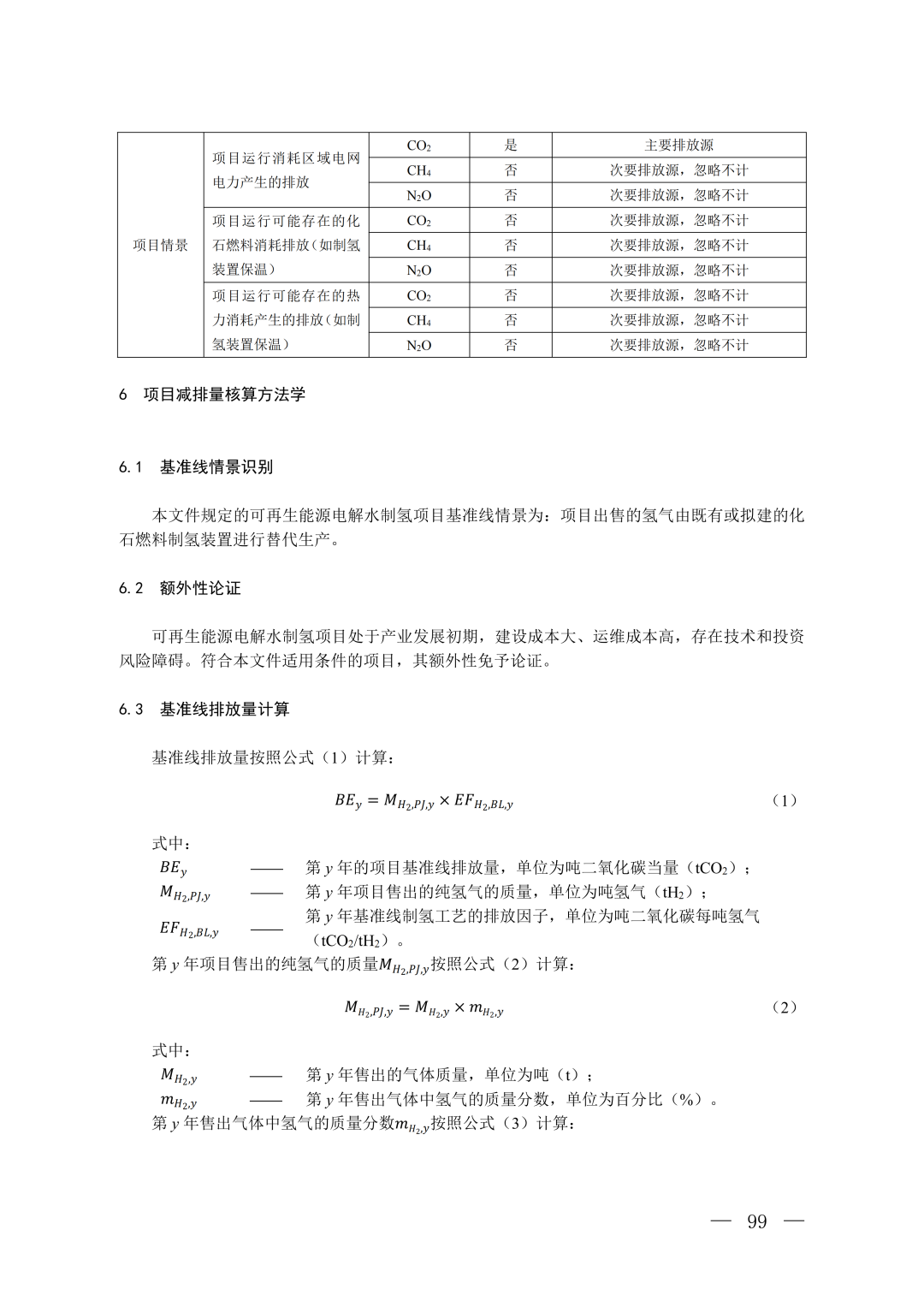 本次发布的《温室气体自愿减排项目方法学 可再生能源电解水制氢(征求意见稿)》共包括9个章节和1个附录,适用于新建的绿电制氢项目,且项目所消耗的电力 90%(含)以上源自自有风电和(或)光伏--这一设置既避免项目投产后对电网消纳造成冲击,也能更明确项目所产氢气的“可再生”属性,且与最新行业标准《清洁低碳氢能评价标准(征求意见稿)》对可再生氢碳足迹的要求相契合。方法学同时也明确核心核算规则:“基准线排放”是传统化石能源制氢的平均碳排放量,是衡量减排效果的“参照标尺”;“项目排放”是项目自身运营的碳排放;两者的差值即是项目最终可申请的 CCER 数量。此外,常规CCER项目需证明减排额外性,即超出常规技术或存在困难,本方法学明确绿电制氢项目可免予额外性论证,旨在支持其从产业发展初期向规模化阶段平稳过渡。