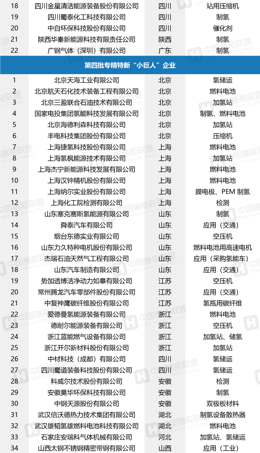 近年来,国家和各地方政府出台的氢能专项政策中,均提及支持氢能专精特新发展的相关内容。《氢能产业发展中长期规划(2021-2035年)》提出,支持“专精特新”中小企业参与氢能产业关键共性技术研发,培育一批自主创新能力强的单项冠军企业。工信部等三部委发布的《加快工业领域清洁低碳氢应用实施方案》提出,培育氢能领域专精特新中小企业和专精特新“小巨人”企业。