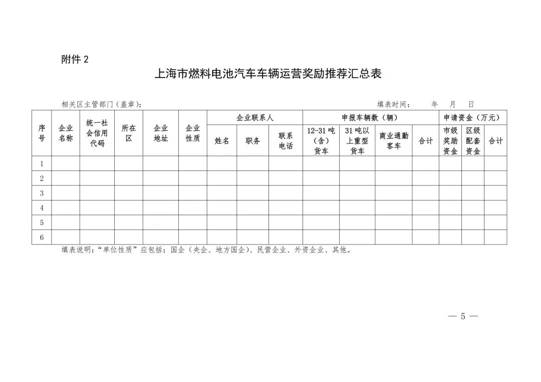 2.上海市燃料电池汽车车辆运营奖励推荐汇总表