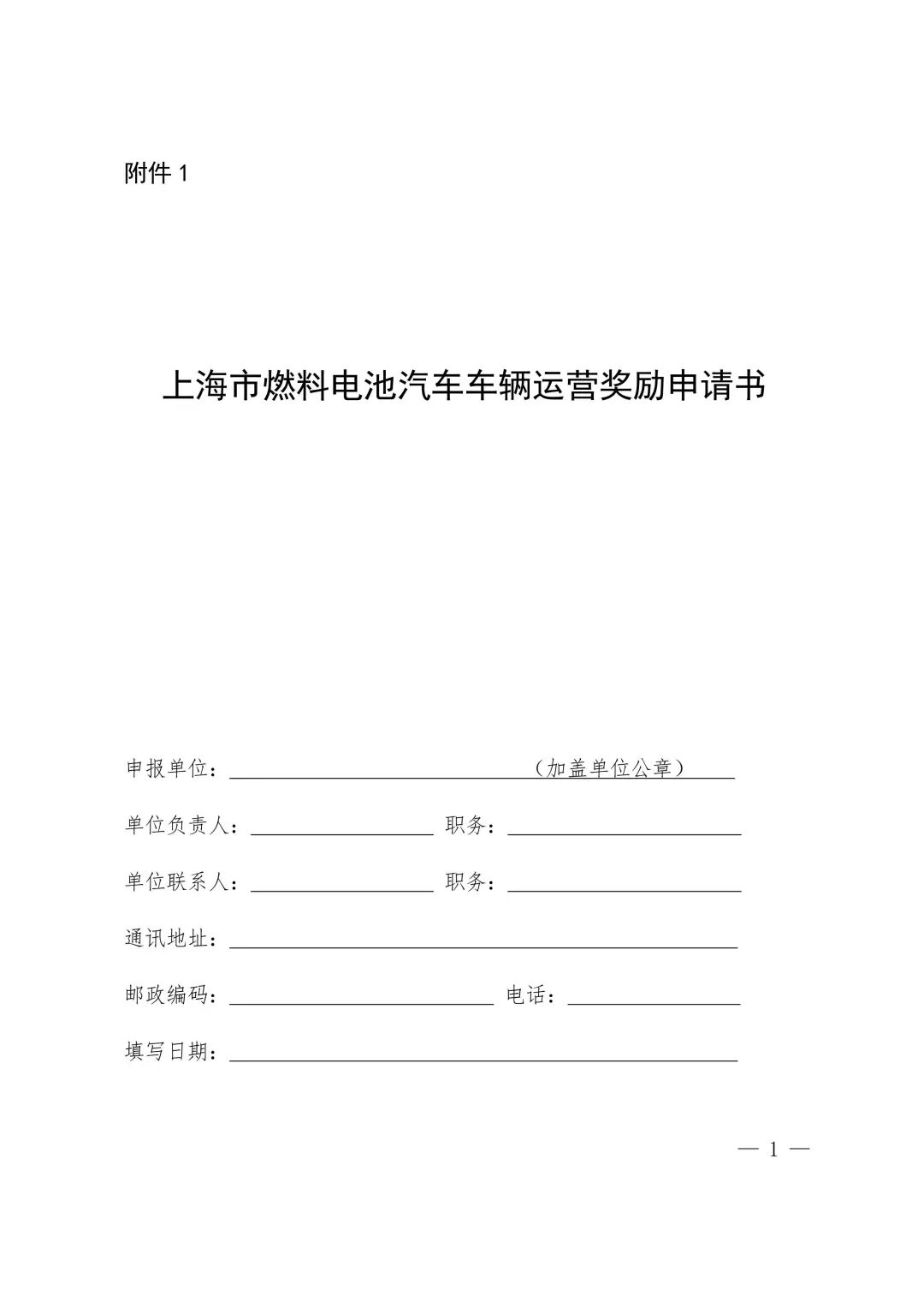 附件:1.上海市燃料电池汽车车辆运营奖励申请书