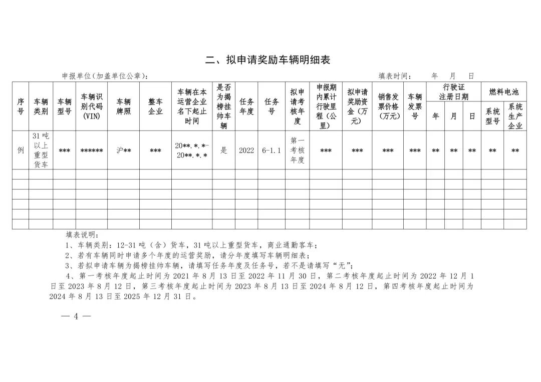 车辆营运企业须按要求提交《上海市燃料电池汽车车辆运营奖励申请书》(见附件1)。