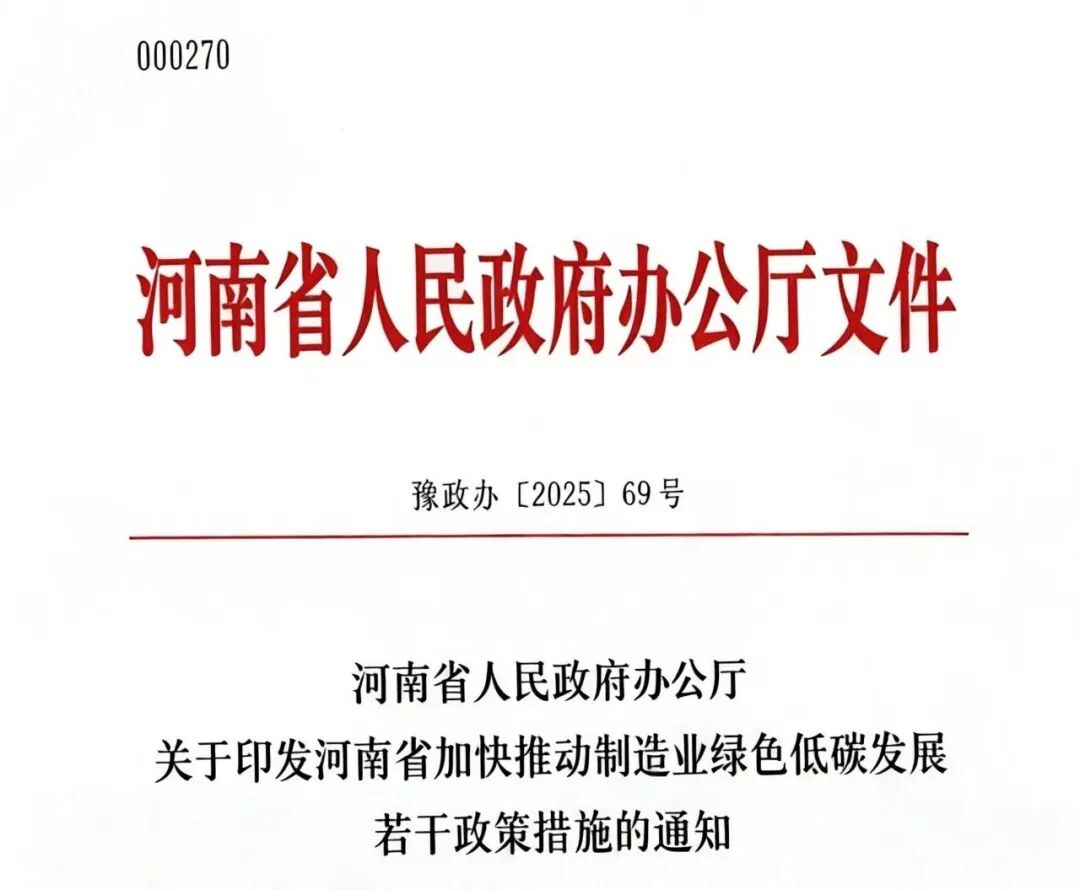 地方政策 | 河南省加快推动制造业绿色低碳发展