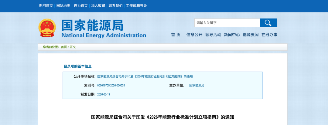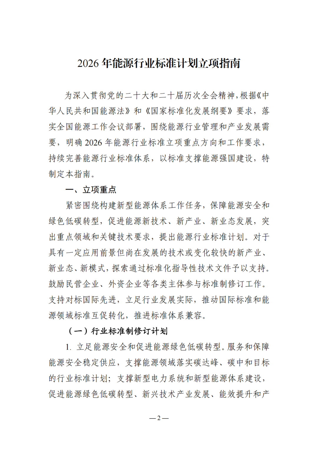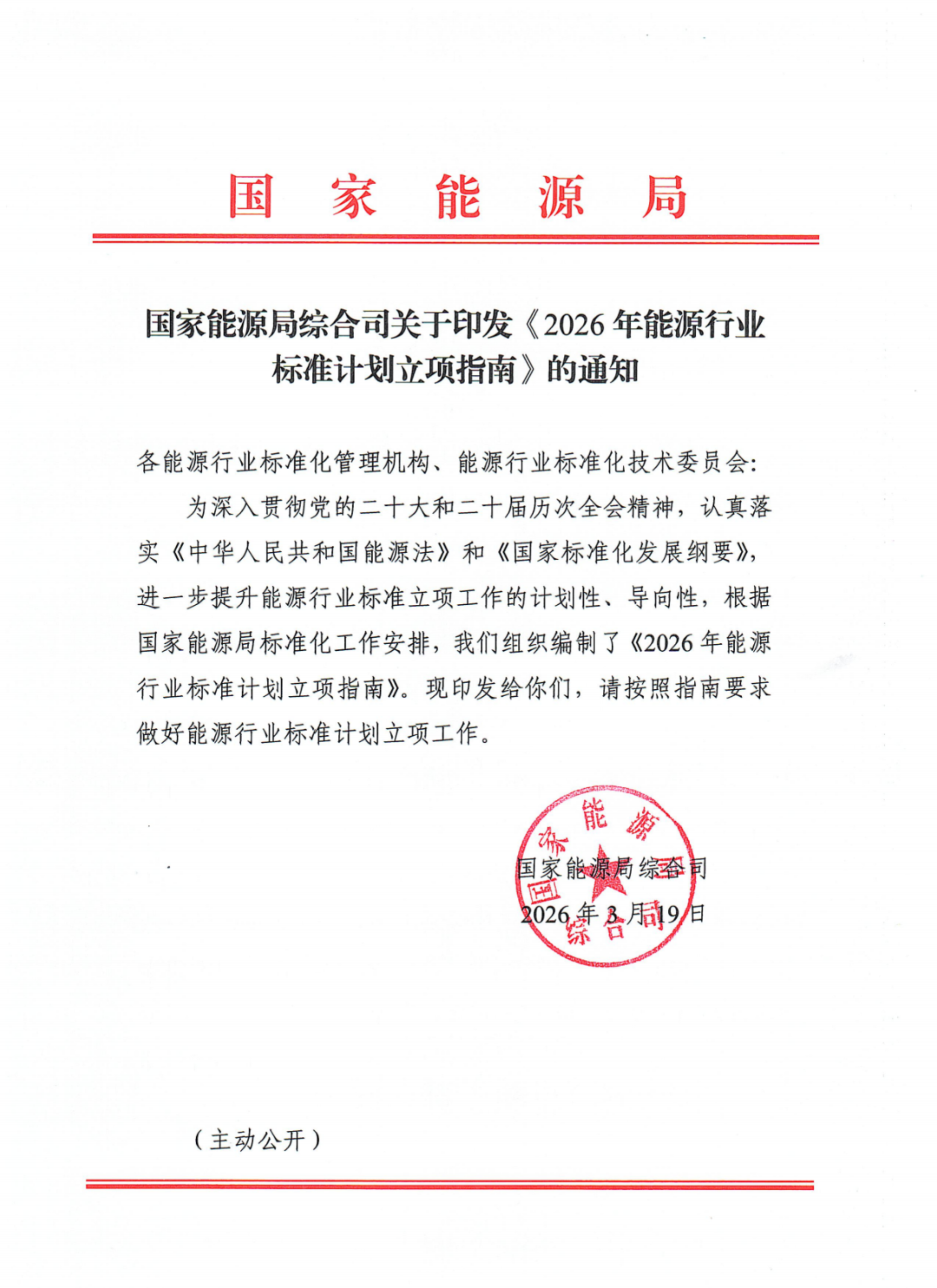 国家能源局发布《2026年能源行业标准计划立项指南》 氢能列入重点立项方向
