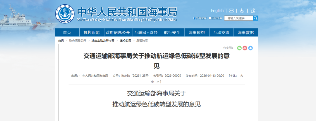 关注 | 交通运输部海事局印发《关于推动航运绿色低碳转型发展的意见》
