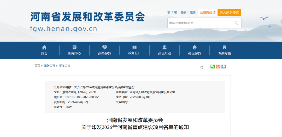 地方政策|涉氢项目9个,2026年河南省重点建设项目名单发布