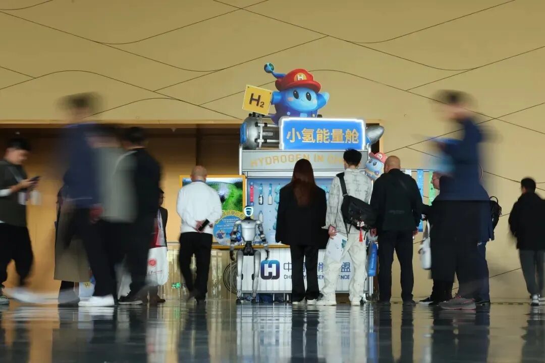 展区外,通道处一台采用氢能源的咖啡机旁,三三两两的参观展人士将这里当作“非正式会议室”正在轻松交流。一位投资人边喝咖啡边对同伴说:“喝一杯用氢能做的咖啡,讨论氢能的未来,很应景。在这里聊项目,感觉话题都带着‘绿意’。”